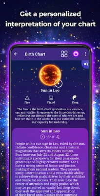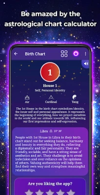 The birth chart app will allow you to uncover hidden secrets you didn't know about your personality and destiny. You can save multiple profiles to always have them at hand, for example, yours, your partner's, family members, etc.