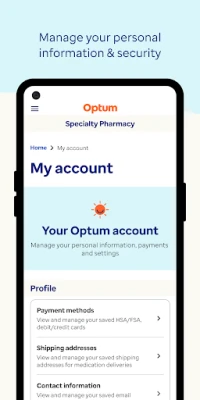 The Optum Specialty Pharmacy™ mobile app helps you take control of your prescriptions and treatment, wherever you are. It's there when you need it, whether you're looking for support or have a question about your prescription. With the app, you can save time managing your prescriptions, giving you more time to do the things you love.