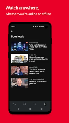 - Download video or audio of talks for offline playback.